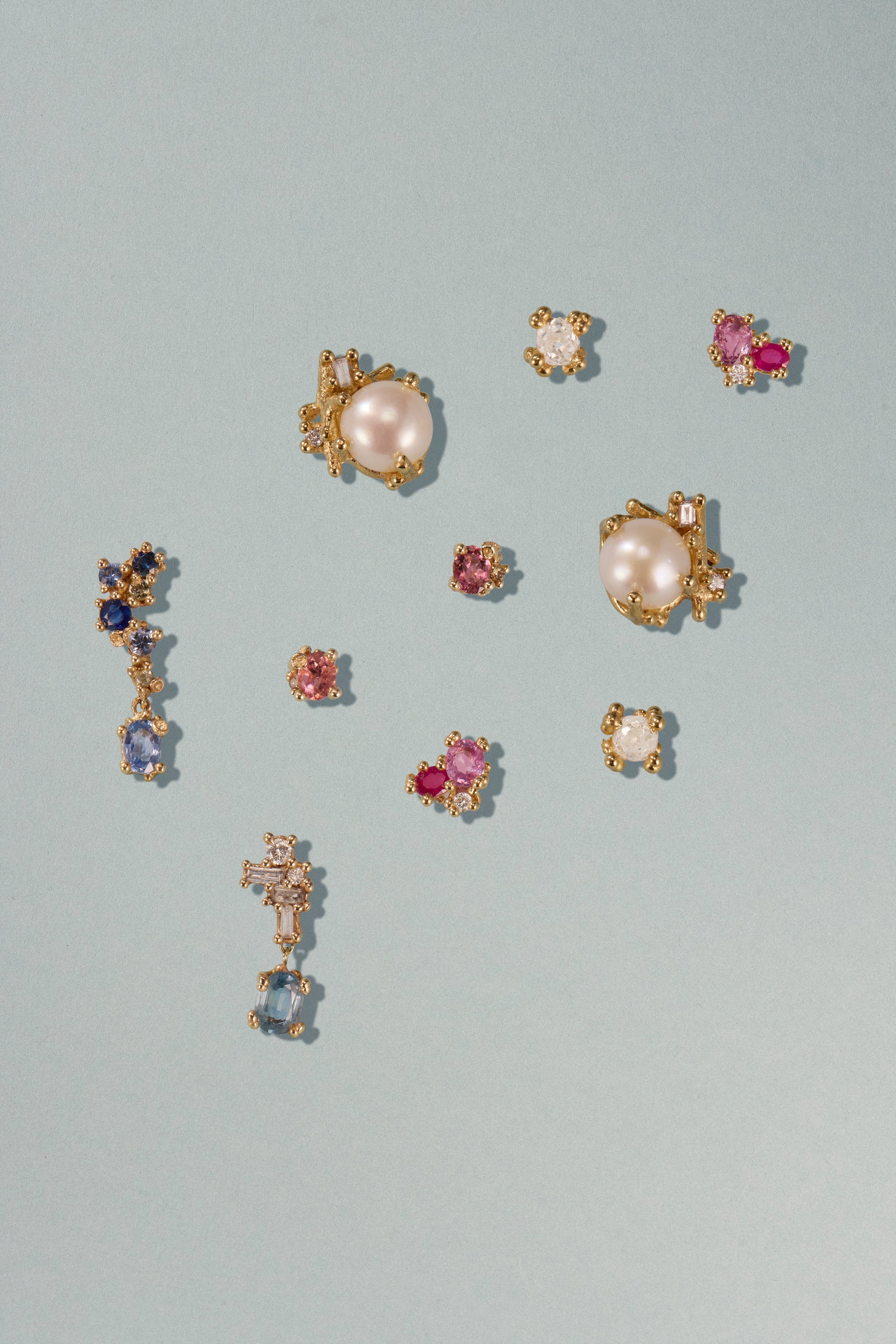 Turquoise and zircon bring winter’s chill in two distinct ways. Turquoise, with its matte sky‑blue surface, feels earthy and grounding, while zircon, a natural gemstone often mistaken for cubic zirconia, delivers crisp, diamond‑like sparkle. Pair smooth turquoise cabochons with clean gold pendants or bead‑station bracelets, then use zircon charms or pavé accents to add frost‑bright light to layered necklaces. Our current favorites include Turquoise & Diamond Flora Earrings and our Blue Zircon Bezel Statement Ring.